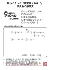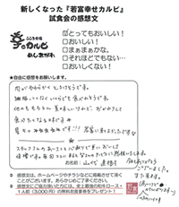 ずっとおいしいお肉とすばらしい接客で僕たちのハートをつかみつづけて下さい。