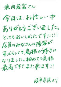 店員のみなさんの接客がすばらしくて、島根が好きになりました。