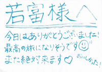 その後に若富さんから手書きのハガキが届いて感激しました。ハガキを送ってくれるお店なんて無かったので驚きましたね。